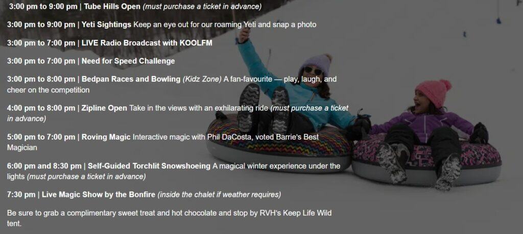 Kick off the weekend with a festive winter evening filled with fun and purpose at Wild Winter Weeknight. This community fundraiser features snow tubing, ziplining, torchlit snowshoeing, magic, music, and kid-friendly activities for all ages. With plenty of laughs, winter thrills, and warm treats, it’s a great way to enjoy the season while supporting local healthcare and giving back to the community. More info here.